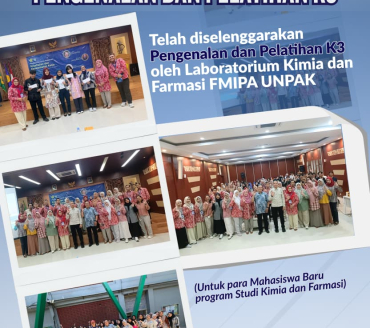 Program Studi Kimia dan Farmasi FMIPA Universitas Pakuan menyelenggarakan Seminar Pelatihan K3 (Keselamatan dan Kesehatan Kerja) di Laboratorium dengan tema “Penerapan K3 di Laboratorium: Upaya Mewujudkan Zero Accident”. Kegiatan ini diikuti oleh mahasiswa baru sebagai bagian dari pembekalan penting dalam memasuki dunia akademik dan praktikum laboratorium.