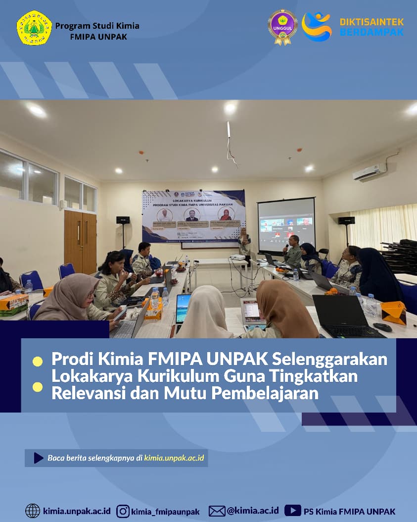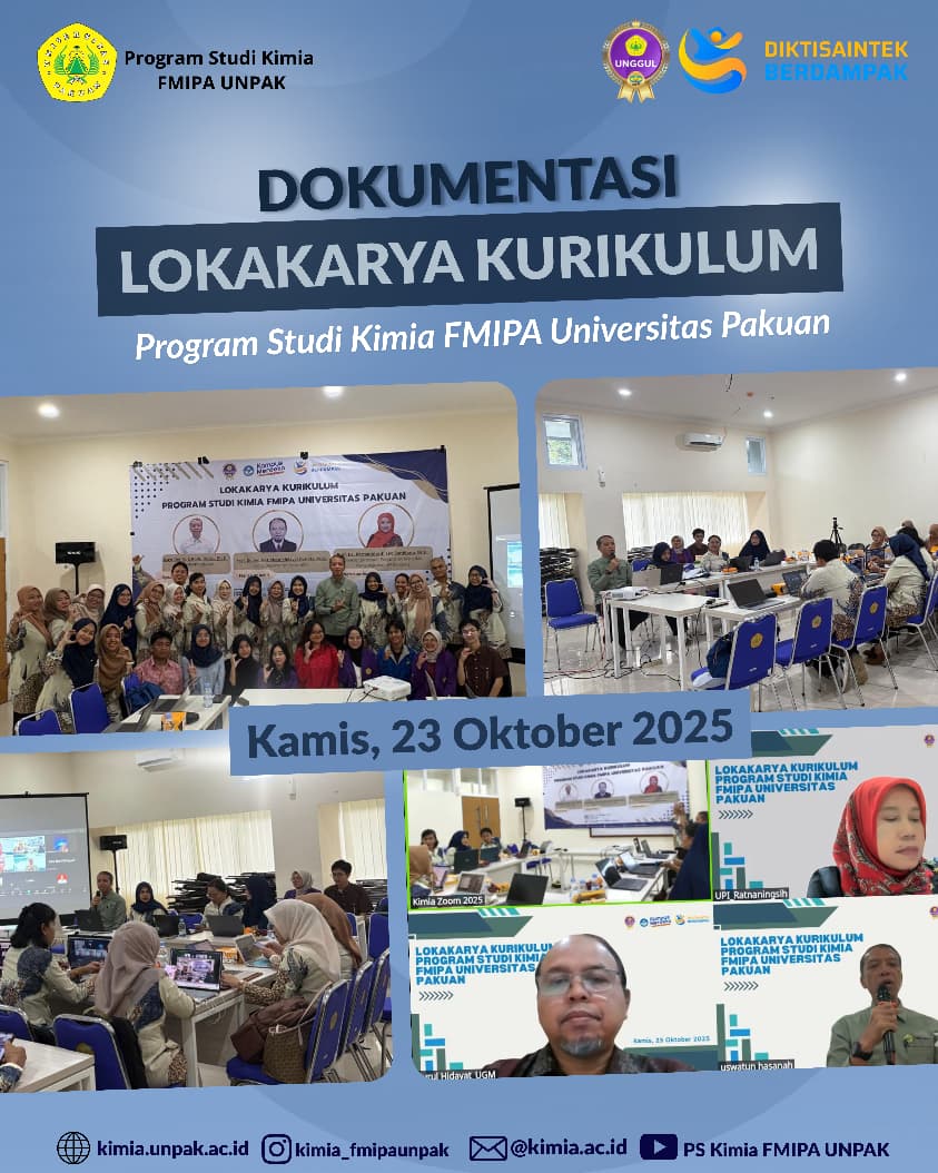 Pada tanggal 23 Oktober 2025Â Program Studi Kimia Fakultas Matematika dan Ilmu Pengetahuan Alam (FMIPA) Universitas Pakuan menyelenggarakan Lokakarya Kurikulum dengan sukses dan berjalan lancar. Kegiatan ini merupakan bagian dari upaya strategis untuk memperkuat mutu pendidikan, relevansi kurikulum, serta kesiapan lulusan menghadapi tantangan global dan industri.