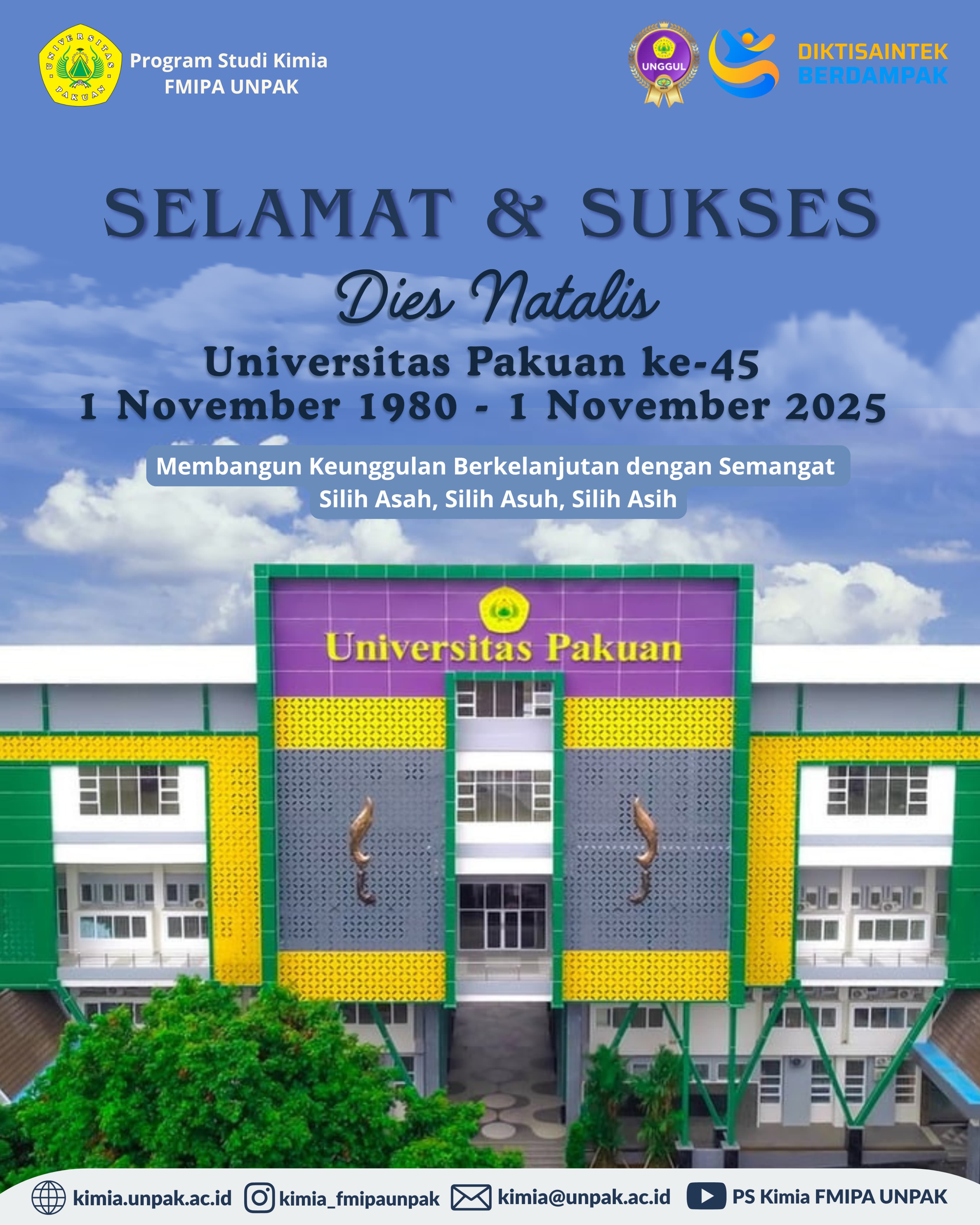 kami, Program Studi Kimia FMIPA Universitas Pakuan, turut berbangga menjadi bagian dari perjalanan panjang Unpak menuju 45 tahun berkarya dan berkontribusi bagi pendidikan Indonesia. πππ
